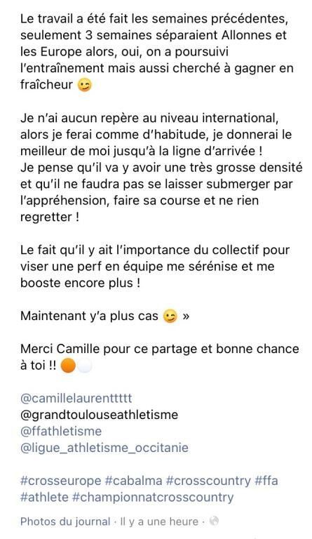 Interview de Camille LAURENT avant son départ pour les "EUROPE" de cross