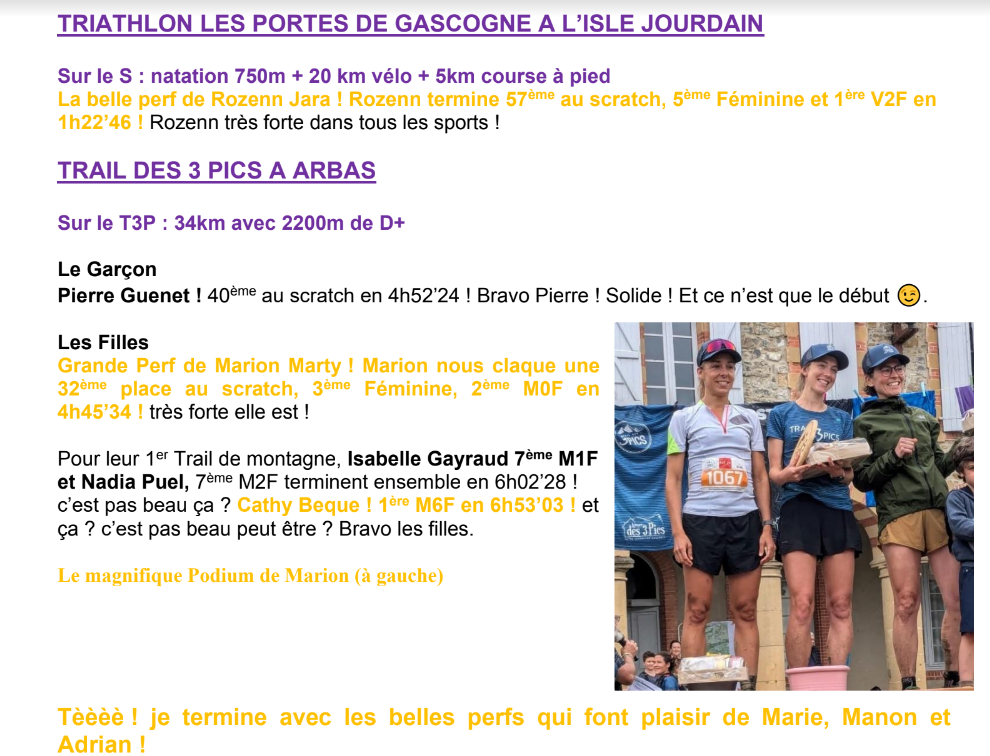 Alain évoque les derniers résultats des coureurs et coureuses du club