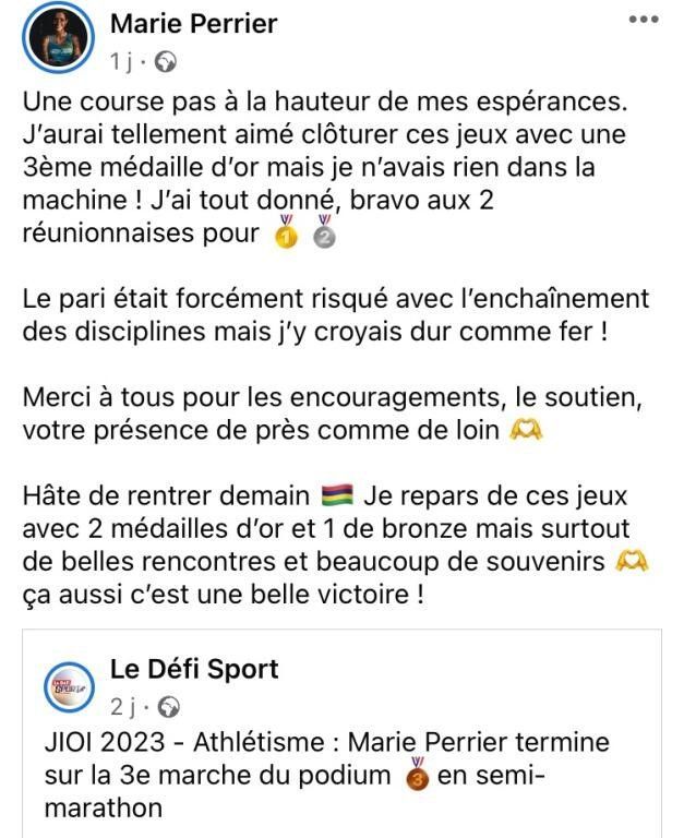 Quelques jours plus tôt elle remportait le 5000m et le 10 000m de cette édition 2023 des Jeux des Iles de l'Océan Indien