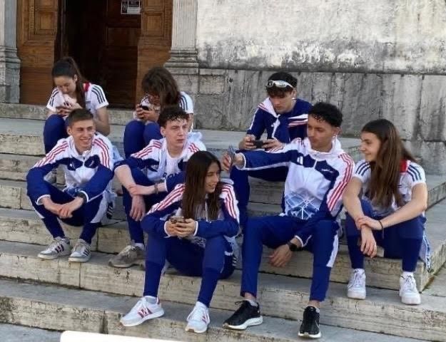 Ci-dessous, Pierre CHAUVEAU (sous la flèche) et Bernard BOSC (2ème en partant de la droite) , au sein du collectif "France", à Oderzo.
