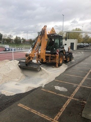 Les travaux ont été effectués mardi après-midi par le personnel technique des installations sportives, qu'on salue une nouvelle fois pour leur efficacité. Les moyens mis en œuvre, impressionnants, ont permis un rapide vidage/remplissage des aires de sauts dont le sable a été changé.